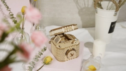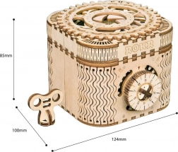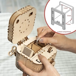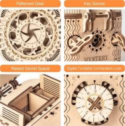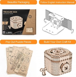 Das hölzerne mechanische Puzzle-Schmuckkästchen aus Sperrholz ist ein einzigartiges Geschenk für Bastler und luxuriöse Innendekorationen. Der Zusammenbau der Box ist mittelmäßig schwierig und bietet eine großartige Herausforderung mit 123 präzise geschnittenen Teilen. Die Box enthält zwei Fächer, darunter das Hauptfach, das mit einem dreistelligen Code gesichert werden kann, den der Benutzer aus vielen Kombinationen wählen kann.