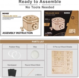 Das mittelmäßig schwierige Puzzle bietet 123 Teile, die aus hochwertigem Sperrholz gefertigt sind und mit einer detaillierten Bauanleitung geliefert werden.