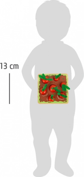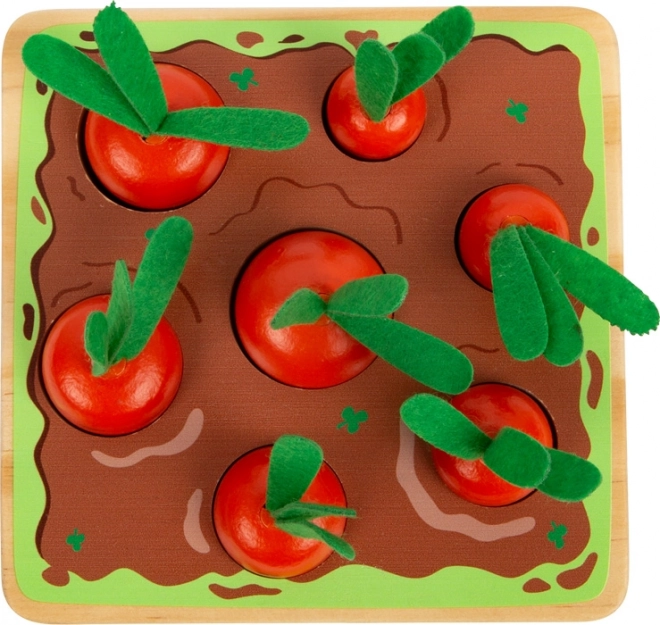 Die Inspiration aus der Montessori-Methode bietet Kindern die Möglichkeit, auf spielerische Weise zu lernen. Das Steck- und Sortierspiel arbeitet mit sieben Karotten unterschiedlicher Größen, die Kinder durch Vergleich in die richtigen Löcher im Brett stecken. Dieses Spielset hilft, feinmotorische Fähigkeiten, Größenverständnis und Beobachtungsgabe zu entwickeln. Zusätzlich fördert das realistische Design der grünen Filzteile auch Rollenspiele und die Fantasie junger Gärtner.