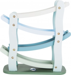 Die kaskadierende Holzrennbahn SMALL FOOT Blue ist ein großartiger Begleiter für Kinder ab 18 Monaten. Die Autos starten vom obersten Stockwerk und sausen die schrägen Rampen hinunter, wobei sie sich effektvoll überschlagen – das fördert Konzentration, Geduld und die Freude am Entdecken von Ursache und Wirkung.