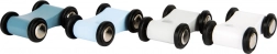 Enthalten sind 4 Autos (1 natur, 3 farbig). Gummierte Räder sorgen für eine leise, gleichmäßige und schnelle Fahrt über die Rampen.
