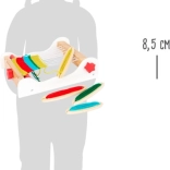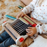 Dieser Kinder-Webrahmen aus hochwertigem Holz fördert Feinmotorik, Konzentration und Geduld. Dank des extra großen, leichtgängigen Spannknopfs lässt sich die Kettspannung bequem einstellen, sodass sich Kinder ganz auf das kreative Gestalten konzentrieren können. Im Set enthalten sind vier Holzspulen mit vorgespulter Wolle in verschiedenen Farben – der Spaß kann sofort beginnen.