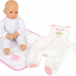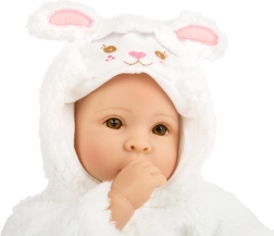 Zum Set gehören ein flauschiger Plüsch-Overall, eine kuschelweiche Decke und ein Schnuller – alles in sanften Farben für einen beruhigenden Effekt. Die Puppe fördert die Feinmotorik, Empathie und Rollenspiele bei Kindern ab 2 Jahren.