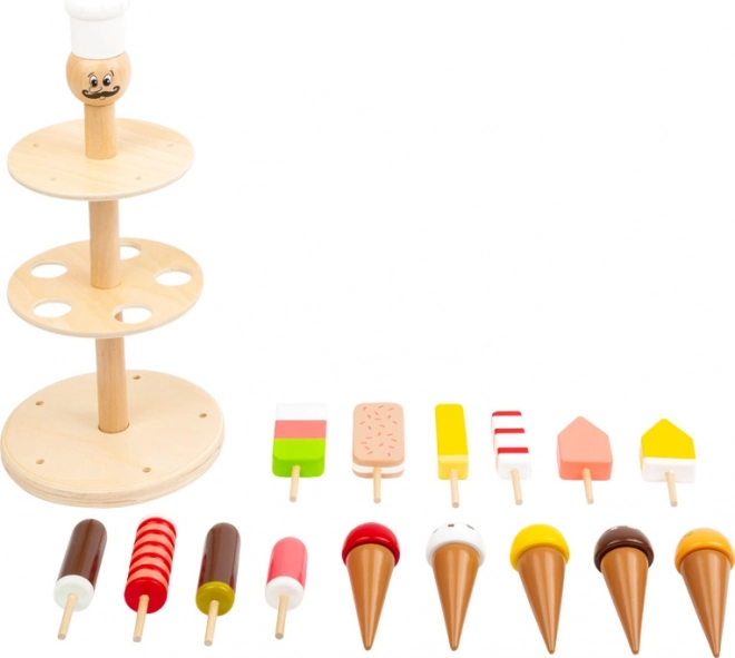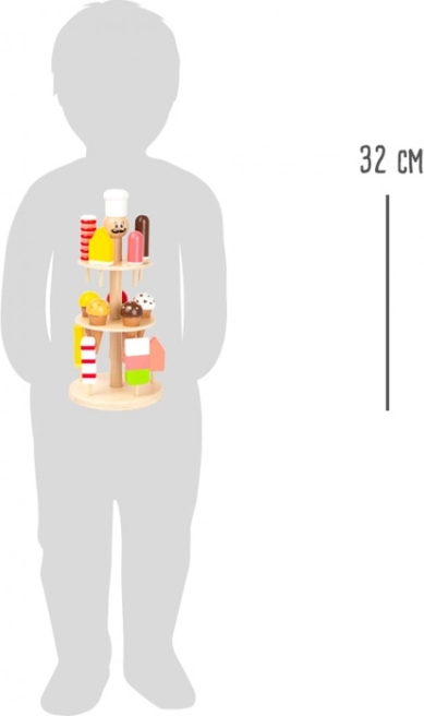 Dieser liebevoll gestaltete Eisstand aus Massivholz erfüllt alle Eiswünsche. Kinder können zwischen Eis am Stiel und Kugel-Eis in der Waffel wählen und sich ihre eigene Vitrine voller bunter Leckereien zusammenstellen. Dank der stabilen Konstruktion ist er ideal für den Kinderladen, die Kinderküche oder das kleine Café.