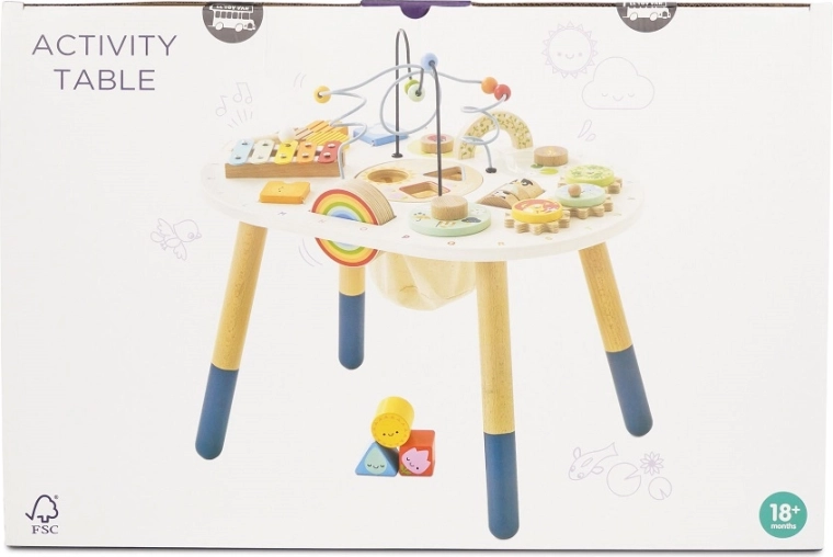 Der Tisch ist sorgfältig aus nachhaltigem FSC®-Holz gefertigt, mit umweltfreundlichen, ungiftigen Farben oberflächenbehandelt und so gestaltet, dass er stabil und sicher für kleine Entdecker ist. Ideal für die heimische Spielecke und als Geschenk, das mit dem Kind mitwächst.