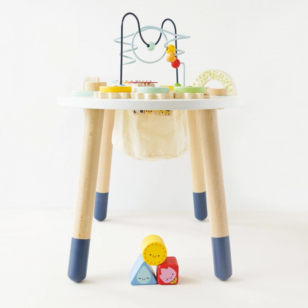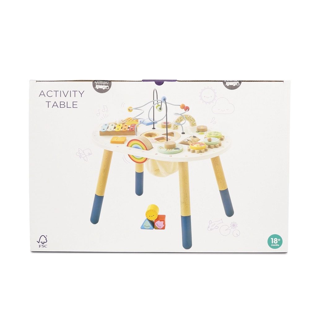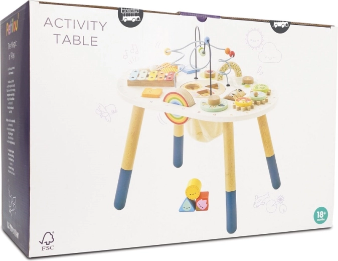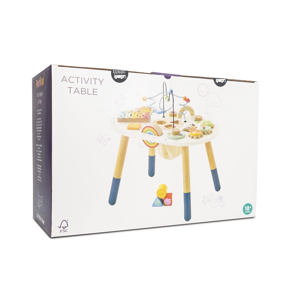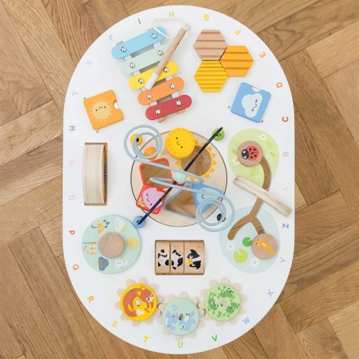 Entdecken Sie den hochwertigen, hölzernen Aktivitätstisch für Kleinkinder aus der Kollektion LE TOY VAN Petilou, der Feinmotorik, sensorische Entwicklung und kreatives Spielen fördert. Er bietet eine Perlenlabyrinth-Bahn, Formsortierer, Xylofon, Zahnräder und weitere Elemente. Hergestellt aus FSC®-Holz und mit ungiftigen Farben bemalt – für sicheres und langanhaltendes Spielvergnügen.