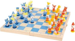 Fröhliche Figuren mit glatter Oberfläche und angenehmem Griff fördern die Konzentration und motivieren zum Erlernen der Schachregeln.