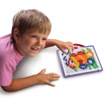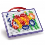 Eine unterhaltsame und praktische Hand-Mosaik für kleine Kreative: ein tragbarer Koffer mit perforierter Platte und 150 bunten Stiften mit 10 mm Durchmesser fördert die Feinmotorik, Kreativität und Fantasie. Dank des cleveren Designs wird nach dem Spielen alles im Koffer verstaut und der Deckel dient als Spielplatte.