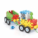 Baue aus Plättchen und Stiften Autos, Häuschen und Bäume! Dieses innovative Konstruktionsspiel enthält miteinander verbindbare flache 3D-Teile und große Stifte in verschiedenen Farben, mit denen auch kleine Kinder verschiedene Autos, Häuser, Türme, Bäume und vieles mehr zusammensetzen können. Unter den insgesamt 62 Elementen des Baukastens befinden sich auch 8 Räder für die Fahrgestelle der Autos und 3 Schnüre, an denen die Autos gezogen werden können. Neben verschiedenen Autos ermöglicht der Baukasten auch die Erstellung unterschiedlicher flacher und dreidimensionaler Strukturen. Dadurch trainiert und fördert er bei Kindern von 2 bis 6 Jahren die Feinmotorik, die Hand-Auge-Koordination sowie die räumliche Orientierung und unterstützt zugleich ihre kognitive Entwicklung. Lieferumfang: 20 miteinander verbindbare flache 3D-Teile, 16 miteinander verbindbare Stifte, 8 Räder, 3 Schnüre zum Ziehen der Autos. Hauptmerkmale: fördert Feinmotorik, Kreativität, Fantasie und logisches Kombinationsvermögen; die Verpackung enthält 52 Teile; für Kinder ab 2 Jahren