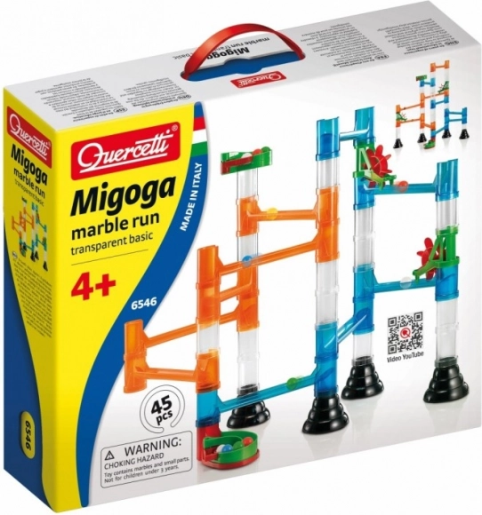 Die Kugelbahn Migoga von Quercetti hilft, die kindliche Motorik und Kreativität zu entwickeln. Kinder können eigene Bahnen entwerfen und beobachten, wie die Kugeln durch die Konstruktionen rollen.