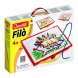 Entdecken Sie den Zauber des kreativen Spielens mit dem Stickset Quercetti Filò, das die kindliche Fantasie und Feinmotorik fördert. Mit speziellen Stiften können Kinder verschiedene Bilder erstellen, indem sie bunte Schnüre in die Löcher auf dem Spielbrett stecken, was ihnen Freude und Spaß bringt.