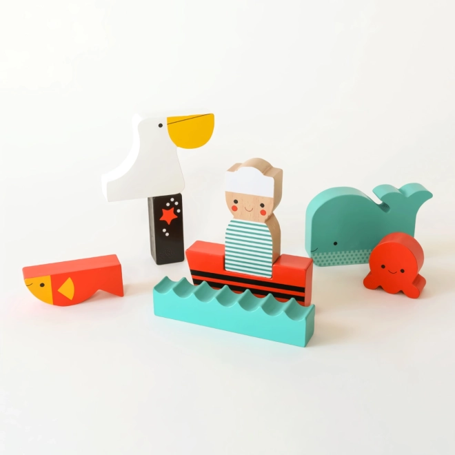 Das Holzpuzzle Auf dem Meer von PETIT COLLAGE bereitet Kindern Freude am Entdecken. Aus den einzelnen Teilen entstehen Bilder mit Seemann, Wal oder Krake, oder sie dienen als eigenständige Figuren für offenes Spielen. Die Teile sind angenehm abgerundet, stabil und farbintensiv und laden so zum wiederholten Puzzeln ein.