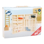 Dieses Holz-Werkzeugset unterstützt die Entwicklung der Motorik, die Hand-Auge-Koordination und die Fantasie. Dank der robusten Materialien hält es dem täglichen Spiel stand und ist ein tolles Geschenk für alle kleinen Baumeister.
