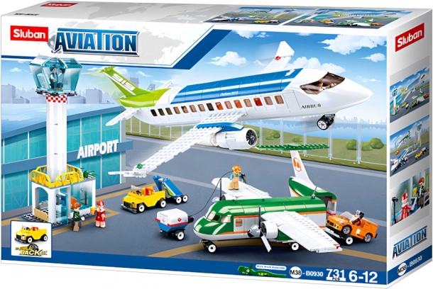 Dieses kreative Sluban-Bauset aus der Aviation-Serie bietet eine komplette Flughafenszene: großes Passagierflugzeug, kleineres Flugzeug, Kontrollturm, Servicefahrzeuge und 6 detaillierte Minifiguren von Crew und Personal. Mit 731 Teilen und mittlerem Schwierigkeitsgrad ideal für Kinder ab 6 Jahren und spielfreudige Eltern. Die Teile bestehen aus hochwertigem, gesundheitlich unbedenklichem ABS-Kunststoff und lassen sich leicht mit Bausteinen bekannter Marken kombinieren.
