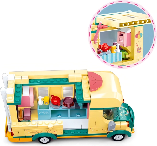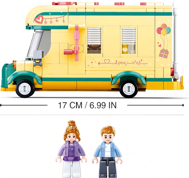 Bauen Sie ein farbenfrohes Wohnmobil voller Details und brechen Sie zu Abenteuern auf. Das Sluban-Bauset überzeugt durch hochwertige Verarbeitung, feste Verbindungen und innovative Figuren mit dreh- und schwenkbaren Teilen. Eine übersichtliche Anleitung ist enthalten und alles ist in einer attraktiven Box verpackt.