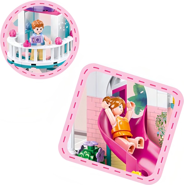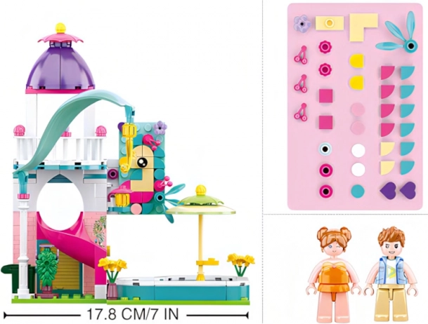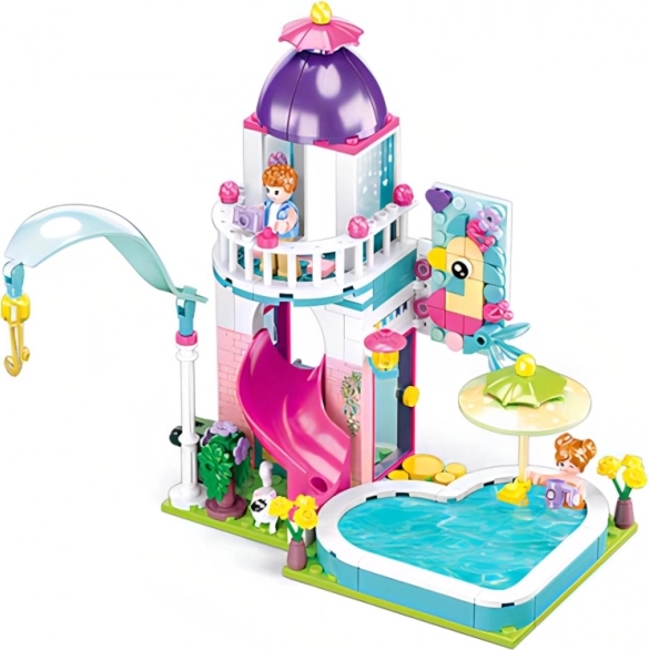 Sluban Häuschen mit Rutsche in den Pool ist ein unterhaltsames und kreatives Konstruktionsspiel, das sich leicht mit anderen Baukästen kombinieren lässt. Es fördert hervorragend die Fantasie der Kinder sowie ihre motorischen Fähigkeiten.