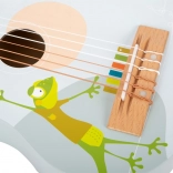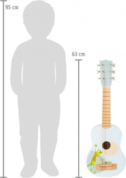 Diese hochwertige Kinder-Holzgitarre ist ideal für kleine Musiker ab 3 Jahren. Dank der farbigen Saiten finden sich Kinder besser in den Tönen zurecht und lernen ihre ersten Lieder schneller. Die leichte Konstruktion und die komfortable Länge von 63 cm erleichtern das Halten und Spielen.
