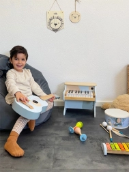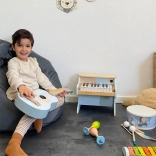 Die Kinder-Trommel Groovy Beats von small foot wurde entwickelt, um kleine Musiker spielerisch und natürlich zum Entdecken von Rhythmus zu motivieren. Die Kombination aus naturbelassenem Holz und modernen Kontrastfarben, ergänzt durch das verspielte Hasenmotiv, macht sie zu einem attraktiven und langlebigen Musikinstrument.