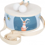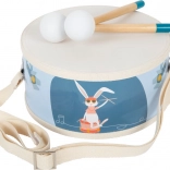 Hochwertige Verarbeitung aus Holz und das niedliche Hasenmotiv sorgen für Langlebigkeit und machen die Trommel zum Lieblingsstück im Kinderzimmer.