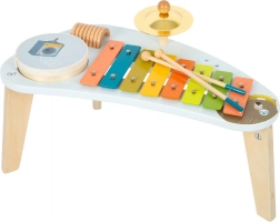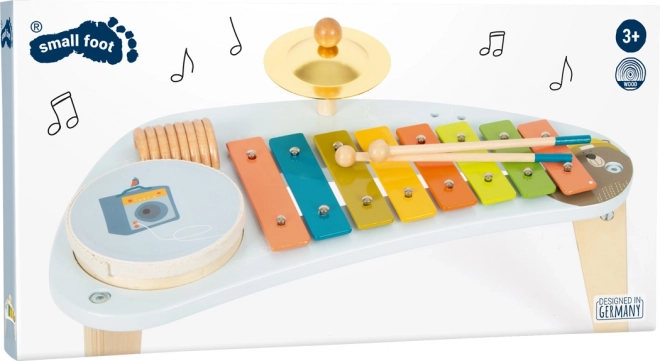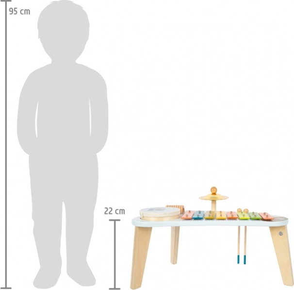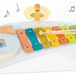 Der Musiktisch Groovy Beats von small foot ist ein durchdachtes Set für die ersten musikalischen Schritte. Dank der soliden Holzkonstruktion und drei stabilen Beinen können Kinder sicher verschiedene Klänge erkunden – von den melodischen Tönen des Xylophons über das klare Klingen der Becken bis zu den Beats der abnehmbaren Trommel. Farbkodierte Klangplatten vereinfachen das Lernen und ermöglichen schnelle Erfolgserlebnisse.