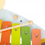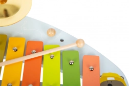 Zum Lieferumfang gehören zwei robuste Schlägel aus Massivholz sowie übersichtliche Noten (z. B. einfache Kinderlieder), damit das Spielen vom ersten Tag an intuitiv und unterhaltsam ist. Das fröhliche Design kombiniert naturbelassenes Holz mit modernen Blautönen und passt so in jedes Kinderzimmer.