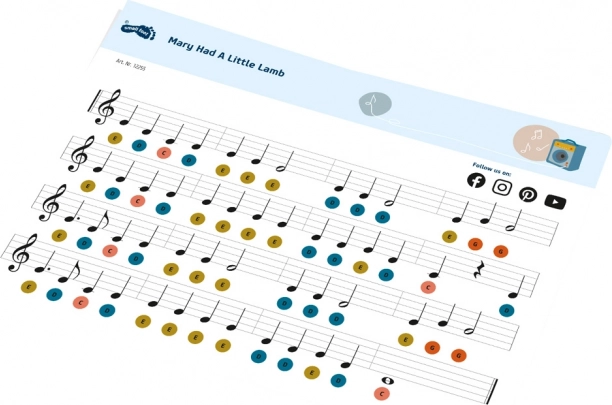 Dank der verschiedenfarbigen Klangplatten können Kinder mit Hilfe der beiliegenden Noten leicht ihre ersten Lieder spielen.