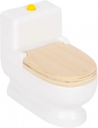 Das stilvolle Bad im Erdgeschoss verfügt über eine Duschwand aus Plexiglas und eine zu öffnende Toilette für noch authentischeres Spiel.