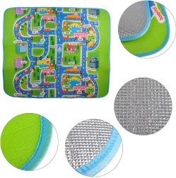 Die Matte isoliert gegen Kälte und dämpft Stürze. Ihr Kind kann sicher auf dem Boden spielen. Ein perfektes Accessoire für das Kinderzimmer, das das Spielen jedes Kindes bereichert. Die Unterseite der Matte hat eine Schicht aus Wärmeisolierfolie, sodass Sie sie in den Garten oder an den Strand mitnehmen können.