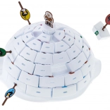 Spielregeln: Bauen Sie das Iglu gemäß Anleitung. Wählen Sie Ihren Pinguin und beginnen Sie zu spielen. Ziel ist es, dass Parka Pete auf dem Iglu bleibt. Die Spieler sind abwechselnd an der Reihe und ziehen mit der Eisstange Eisblöcke heraus. Verliert, wer das Iglu zum Einsturz bringt.