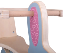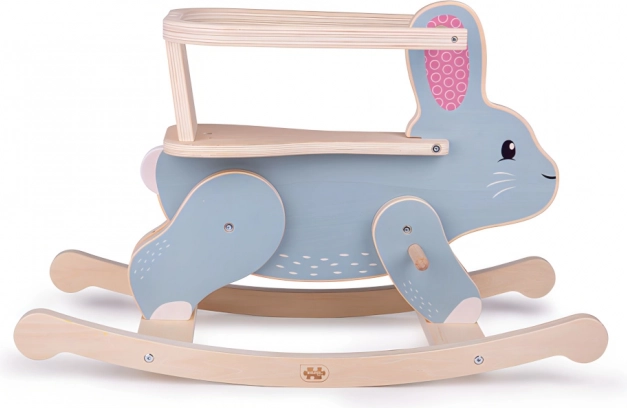 Dieses stilvolle Schaukel-Häschen aus strapazierfähigem Sperrholz belebt jedes Kinderzimmer. Die sichere Rückenlehne mit Schutzbügel hält das Kind fest im Sattel, während die sanfte Schaukelbewegung die Motorik, das Gleichgewicht und die Bewegungssicherheit fördert.