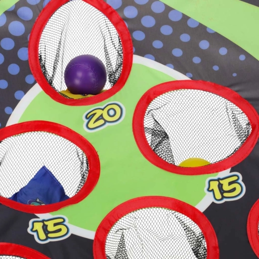 Dieses farbenfrohe Wurfziel-Set macht jeden Nachmittag zu einem aktiven und spaßigen Spiel. Dank der nummerierten Öffnungen verstehen Kinder das Punktesystem leicht und können um das beste Ergebnis wetteifern. Das Spiel fördert präzises Zielen, Koordination und Konzentration – zu Hause, im Garten, im Park und auf Ausflügen.