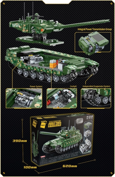 Dieses realistische Bauset bietet eine detaillierte Nachbildung des Hauptkampfpanzers 99A einschließlich eines durchdachten Innenraums und eines vereinfachten Modells der Dieselantriebseinheit. Dank der unabhängig gefederten Achsen und des voll drehbaren Turms erhältst du ein authentisches Modell, das erfahrene Baumeister wie auch Sammler begeistert.