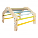 Dieses Klettergerüst besteht aus einer hochwertigen Kombination von Sperrholz und Massivholz, was seine Widerstandsfähigkeit und Stabilität gewährleistet. Dank der Möglichkeit, es in verschiedene Formen zu gestalten, bietet es vielseitige Spielmöglichkeiten und ist zudem außerordentlich platzsparend. Ideal für die Entwicklung von Gleichgewicht und motorischen Fähigkeiten bei Kindern und kann auch in der Bewegungstherapie eingesetzt werden.