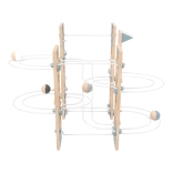 Die Materialien des Spielzeugs bestehen aus langlebigem Sperrholz und massiven Holzkugeln, die mit ihrem skandinavischen und natürlichen Aussehen stilvoll jedes Kinderzimmer ergänzen. Diese Bahn ist ein ideales Werkzeug zur Förderung der kindlichen Kreativität und Feinmotorik.