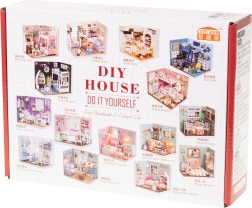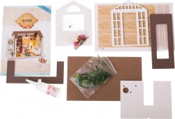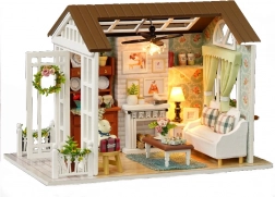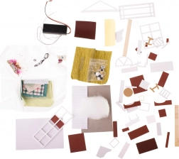 Das Set enthält alles Notwendige für den Bau des Wohnzimmers und dessen Ausstattung, einschließlich Kleber und ausführlicher bebilderter Anleitungen. Die LED-Beleuchtung, die im Paket enthalten ist, wird mit Batterien betrieben (2× AAA 1,5 V und 3× 1,5 V LR54 – Batterien nicht enthalten) und rundet die Gesamtatmosphäre wunderschön ab.
