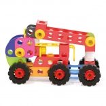 Schrauben, Muttern und Lochplatten lassen sich leicht verbinden und halten sicher. Kinder bauen Autos, Traktoren, Kräne und eigene Modelle – einfach und sicher.