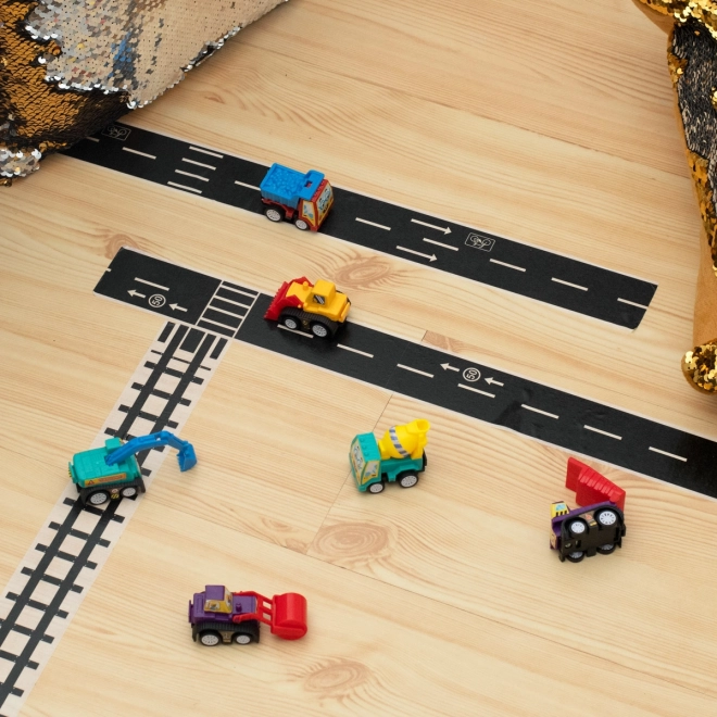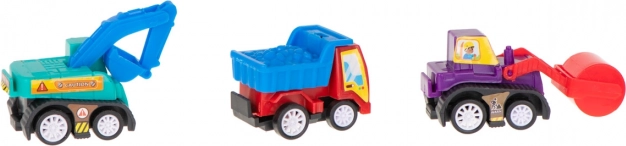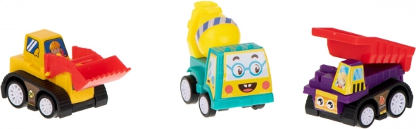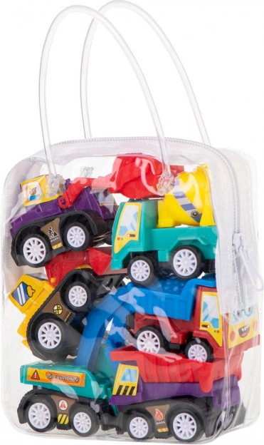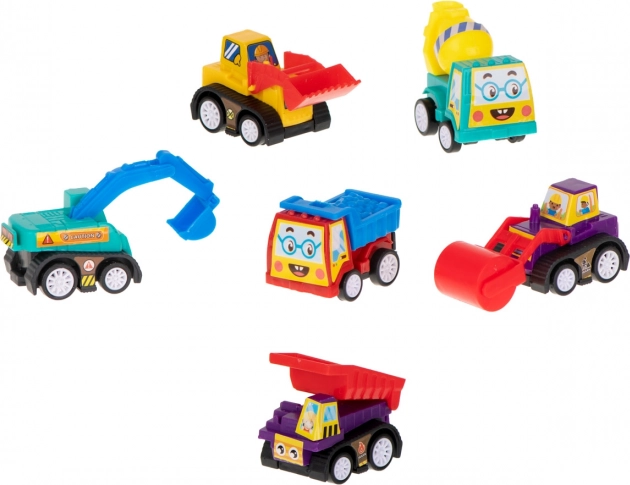 Wir präsentieren ein Set aus sechs farbenfrohen Baufahrzeugen mit Freilaufantrieb, die nur angeschoben werden müssen und dann selbstständig fahren. Diese Fahrzeuge regen die kindliche Vorstellungskraft an und bringen Spielspaß.