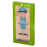 Das Set enthält eine Holzgrundplatte und 28 einzelne Teile, die vom Skelett bis zur Kleidung der Figur reichen. Dank des schlichten Designs und der natürlichen Materialien unterstützt das Puzzle die Prinzipien der Montessori-Pädagogik, die sich auf die ganzheitliche Bildung des Kindes konzentriert.