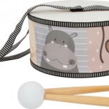 Der praktische, längenverstellbare Gurt erlaubt Kindern, auch beim Gehen zu spielen. Er lässt sich leicht an die Statur des Kindes anpassen und hält die Trommel an Ort und Stelle.