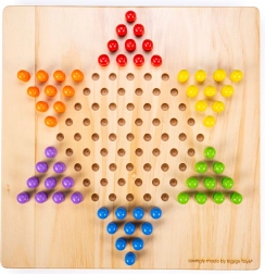 Klassisches Brettspiel für die ganze Familie in hochwertiger Holz-Ausführung. Fördert Logik, Konzentration und Feinmotorik, begeistert durch leuchtende Farben und das angenehme natürliche Material. Beinhaltet Spielbrett und 60 Spielfiguren für 2–6 Spieler.