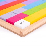 Dieses hölzerne Lehrmittel verbindet Spiel und Lernen – Kinder können Zahlen im wahrsten Sinne „begreifen“, was zu einem tieferen Verständnis ihrer Bedeutung führt. Die Tafel fördert logisches Denken, visuelle Wahrnehmung und Feinmotorik und motiviert gleichzeitig dazu, Beziehungen und Proportionen zwischen Zahlen eigenständig zu entdecken.