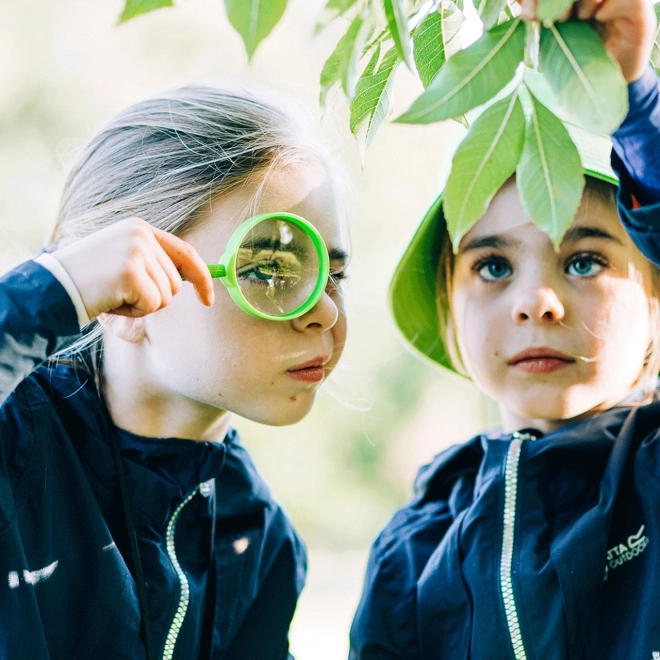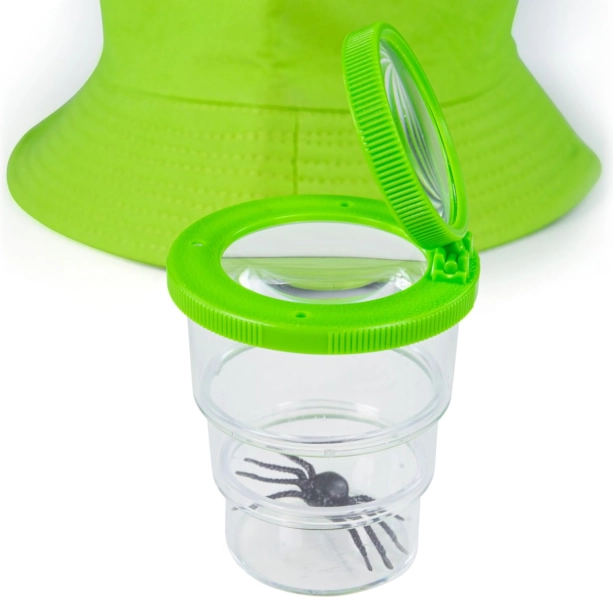 Die Lupe und der transparente Behälter mit Deckel ermöglichen es Kindern, Details ganz aus der Nähe zu erforschen – naturfreundlich und schonend.