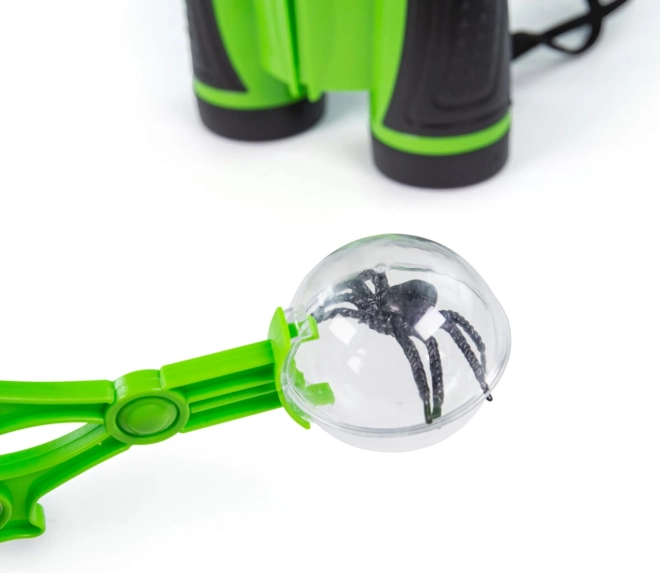 Netz, Sammeldose, Lupe, Fangpinzette, Fernglas und Sonnenhut – die komplette Ausrüstung für sicheres Fangen und Beobachten von Insekten und mehr in der Natur.