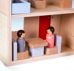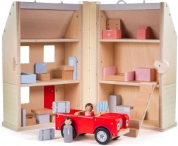 Enthalten sind 13 Möbelstücke, 2 Holzfiguren und ein rotes Auto für noch mehr Geschichten und Interaktion.