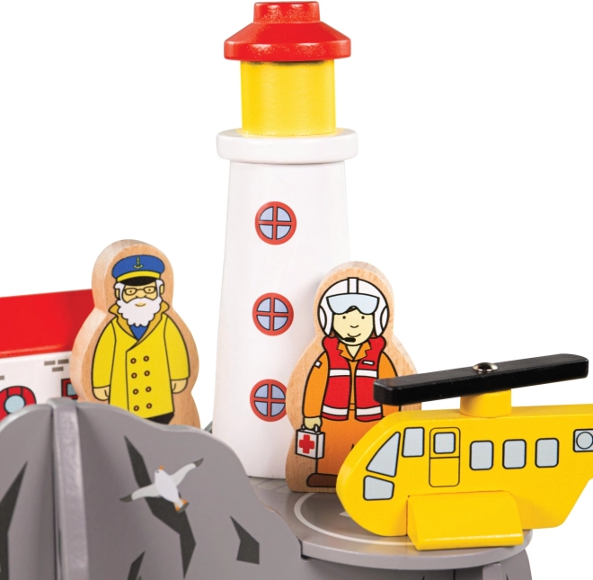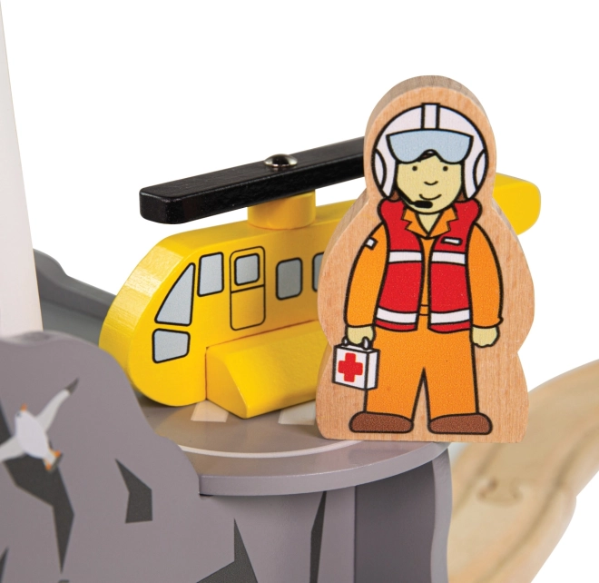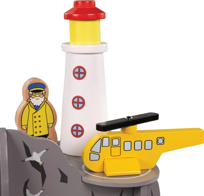 Holen Sie Küstenabenteuer mit Leuchtturm, Häuschen und Landeplatz für den Hubschrauber in Ihre Eisenbahnwelt. Kinder können den im „Meeres“-Fels verborgenen Tunnel erkunden, Rettungseinsätze leiten und Fantasie sowie Erzählfähigkeiten fördern. Das Set ist ein ideales, fantasievolles Erweiterungselement und passt hervorragend zu Themen wie Suche, Rettung und Leben am Meer.