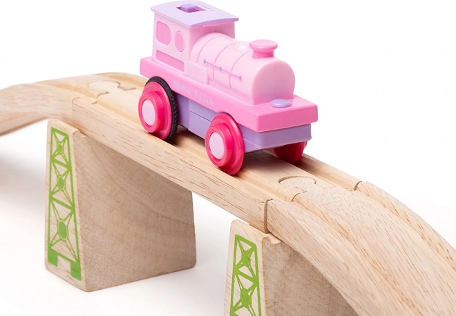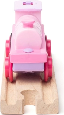 Diese rosafarbene elektrische Lokomotive bringt Energie und Stil in deine Holzeisenbahn. Einfach 2× AAA-Batterien einlegen und zusehen, wie sie sicher anfährt, stoppt und sowohl Fracht als auch Fahrgäste befördert. Dank der magnetischen Kupplungen verbindest du sie im Handumdrehen mit Waggons und kannst sofort auf die Strecke gehen.