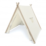 Das Zelt ist kompakt und leicht aufzubauen und eignet sich daher für kleinere wie größere Kinderzimmer. Das minimalistische Design in neutralem Weiß fügt sich leicht in jedes Interieur ein und unterstützt kreative Spiele ebenso wie ruhige Lesemomente.