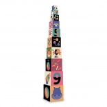 Einzigartiger Falturm, der bis zu 87 cm hoch wird, voll mit bunten Illustrationen von Zirkustieren und Zahlen. Kinder lernen spielerisch Zahlen kennen und entwickeln ihre Feinmotorik und Koordination. Dank dieses Designs ist das Spielzeug leicht zu verstauen und bietet visuelle Stimulation und kreatives Spiel.