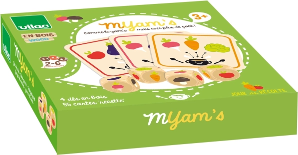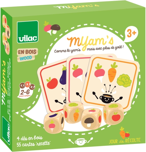 Das unterhaltsame Familien-Würfelspiel Vilac – Tag der Ernte lädt Kinder ab 3 Jahren zum schnellen Würfeln und Sammeln von Rezepten ein. Das Set enthält 55 Spielkarten und 4 Würfel, gespielt wird mit 2–6 Spielenden. Einfache Regeln, schönes Design und Gemüsemotive fördern Zählen, Konzentration und Aufmerksamkeit.