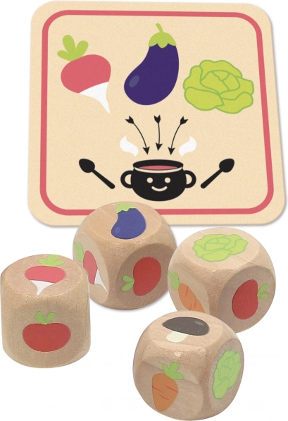 In diesem reizenden Würfelspiel für Kinder versucht ihr durch Würfe Kombinationen zu bilden, die den Rezeptkarten entsprechen. In jedem Zug habt ihr bis zu drei Würfe – nach dem ersten könnt ihr ausgewählte Würfel beiseite legen und die Zusammenstellung verbessern. Wer als Erste oder Erster 10 Rezepte sammelt, gewinnt.